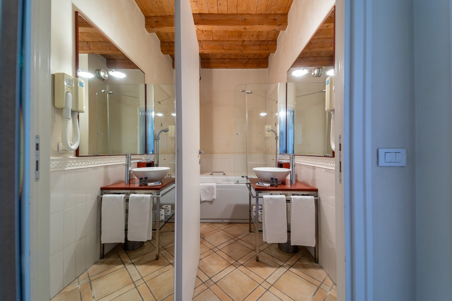 The apartments include two bedrooms: one double bedroom with a direct-access bathroom and the other one located in the attic and including either single or double beds and a bathroom. All the apartments have a shower, and some of them also include a bathtub, for those who loves to end the day with a long relaxing bath.